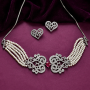aditional Gold-Plated Choker Necklace Set with Pearl Drops